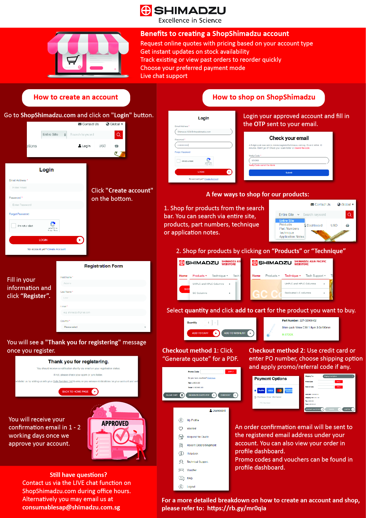 Go to Login on shopshimadzu.com and click on create account to register using a corporate email address.