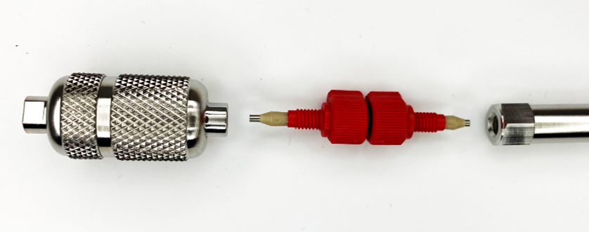 Our Delrin Column Coupler delivers a low swept-volume connection while maintaining column efficiency. Our couplers are an excellent option for reducing overall flow path volume while coupling two devices together. It is manufactured from Delrin giving is excellent chemical resistance. It has a swept volume of 1.3uL,a thru-hole of .007 and a 10-32 coned port configuration. It comes with (2) F-200 Delrin Fittings.