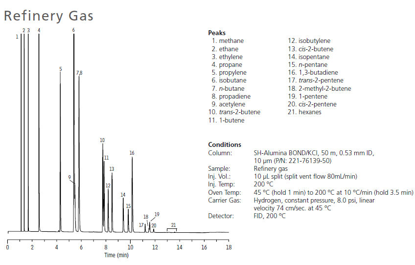 - Lowest polarity alumina column in Shimadzu PLOT columns.