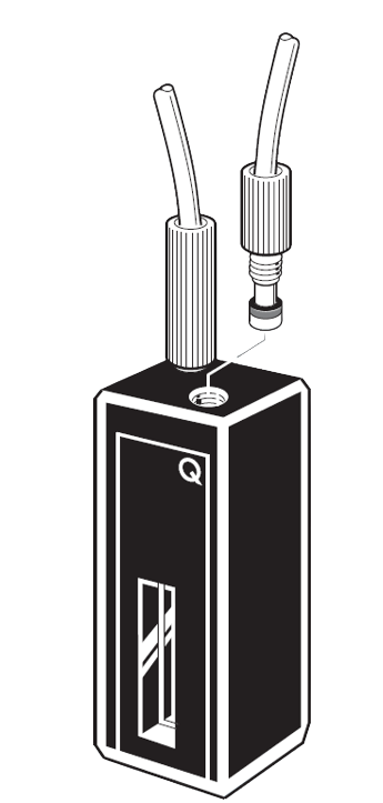 - The PTFE inlet and outlet tubes are connected into the flow cell with a M6 threaded connector.