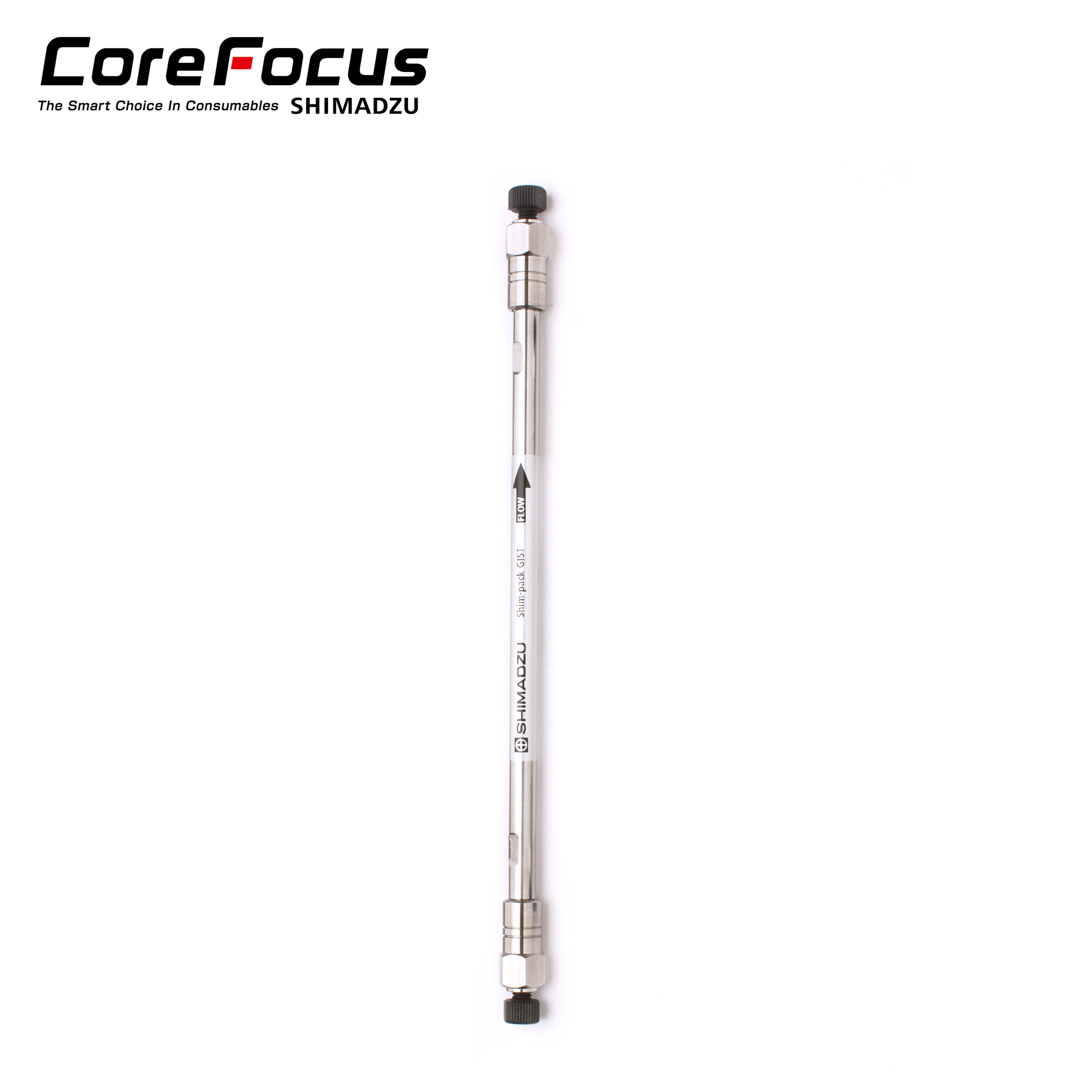 Shim-pack GIS CN is capable of either normal phase or reversed phase analysis. Cyanopropryl groups bonded to silica gel with high density increases the difference recognition of hydrophilicity and the stability. Due to no end-capping, it is capable of analysis utilizing cyano group characteristics. In reversed phase mode, separation can be achieved for those compounds that could not be separated on straight-chain-alkyl columns, such as C18 or C8 bonded phases. When using the column for reversed phase mode, fully equilibrate the column before use.