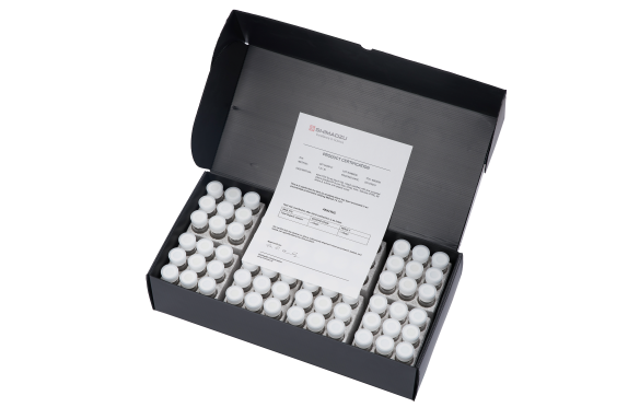 - CQ vial are sealed with a cap and septum and packed in a plastic box that inhibits dust or other matter.