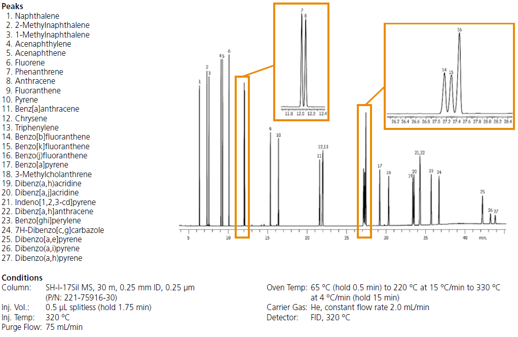 - Excellent inertness and selectivity for active environmental compounds, such as PAHs.