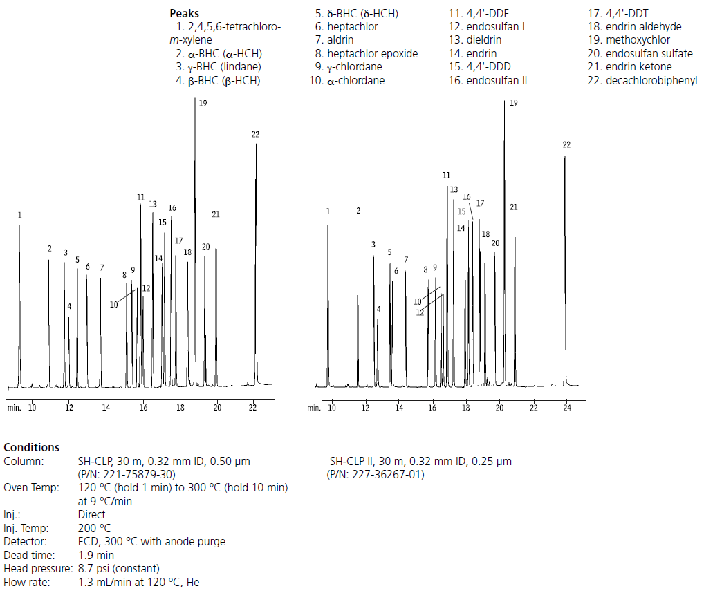- Dedicated columns for organochlorine pesticides and herbicides.