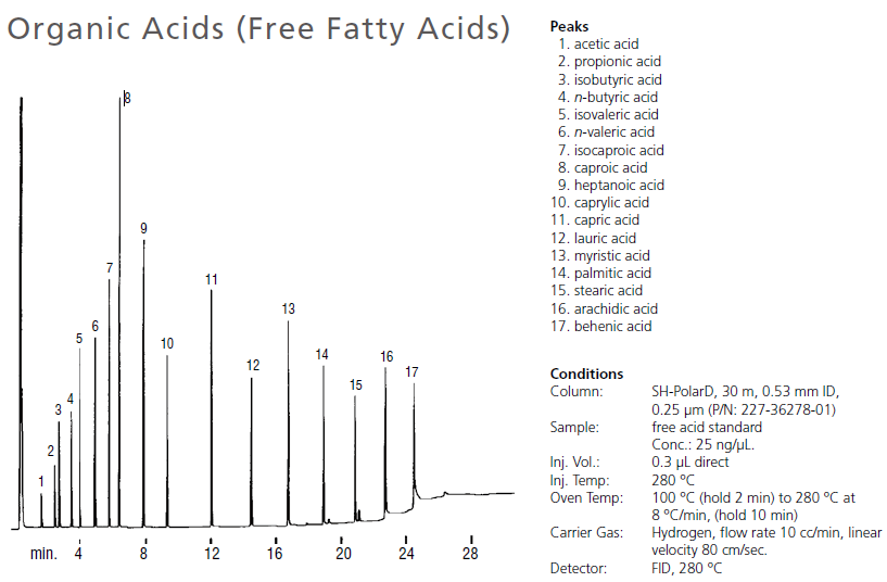 - Dedicated columns for free (underivatized) acids, some inorganic acids.