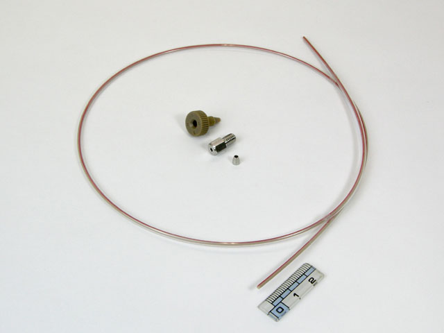 PEEK tubing, 0.13mm ID x 600mm. Includes fittings. For SIL-20A/AC outlet, connecting the injection valve to the column. Not for HT model.