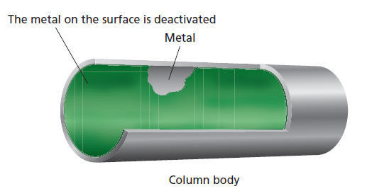 - The metal coordinative adsorption is suppressed by deactivating the column parts in contact with the solution.