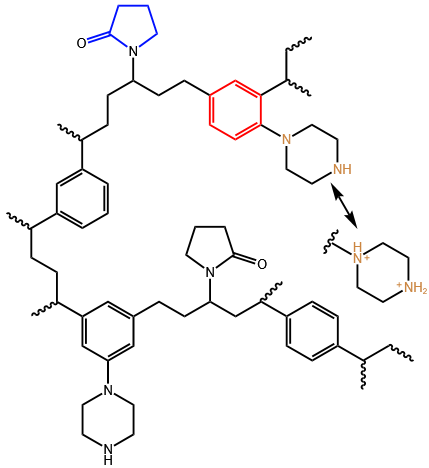 - Polystyrene-divinylbenzene copolymer bonded with piperazine group