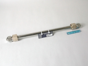 * Installed between the liquid pump and the sample injector to protect the Shim-pack Diol column. Shim-pack Diol series is a kind of gel filtration chromatography (GFC) column. GFC is used to separate water-soluble high polymers such as polysaccharides, proteins, and nucleic acids according to their molecular sizes by using hydrophilic packing materials and aqueous mobile phase. Shim-pack Diol series is packed with porous spherical silica gel chemically bonded with a hydroxyl group. Due to the hydrophilic hydroxyl group, Shim-pack Diol series can be used in high-speed GFC and provide sharp peaks during the analysis of protein and biochemicals (such as enzymes).