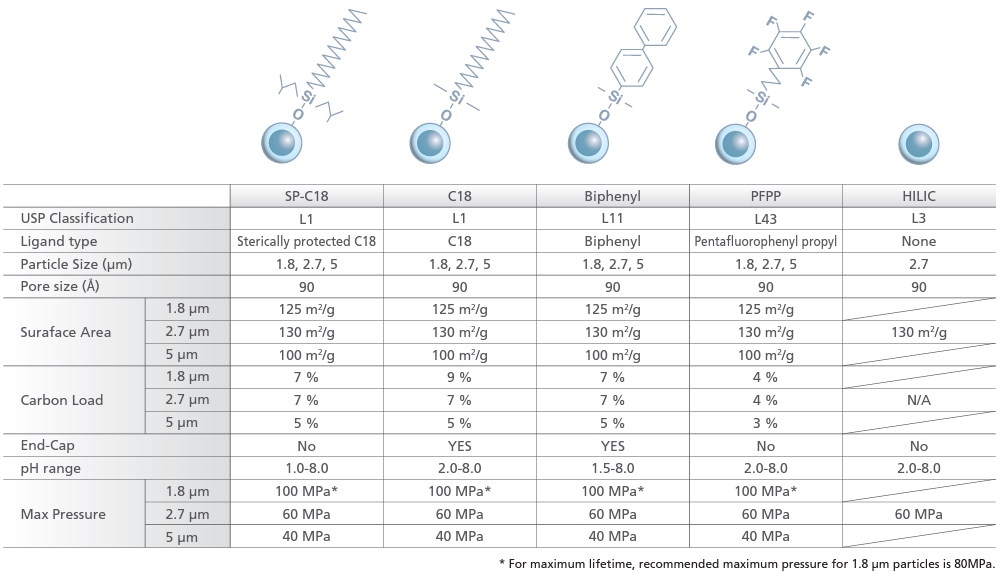 Designed to maximize performance of LC systems, Shimadzu’s Shim-pack Velox columns with core shell technology enable you to achieve increased separations and faster analysis times on any LC platform. Whether developing a high efficiency LC separation method, transferring an existing method for increased throughput while maintaining resolution, or are trying to improve the resolution of a complex separation, Shim-pack Velox columns will satisfy your needs. Column ruggedness is critical to any LC analysis and Shim-pack Velox core-shell columns deliver excellent column lifetime for even the most challenging sample matrices.